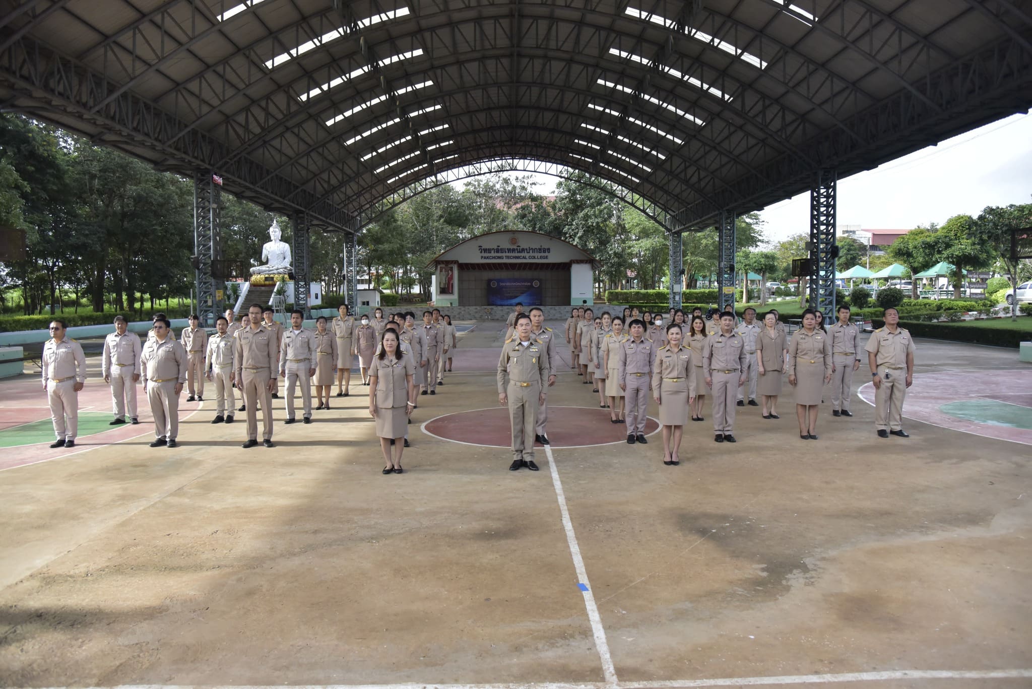 นายสุริยา พงษ์ศิริรักษ์ ผู้อำนวยกำารวิทยาลัยเทคนิคปากช่อง พร้อมด้วยผู้บริหาร คณะครู และบุคลากรทางการศึกษา เข้าร่วมกิจกรรม “วันพระราชทานธงชาติไทย” ประจำปี 2568 โดยพร้อมเพรียงกันร้องเพลงชาติไทย เพื่อแสดงออกถึงความรัก ความภาคภูมิใจในความเป็นชาติไทย และระลึกถึงพระมหากรุณาธิคุณของพระบาทสมเด็จพระมงกุฎเกล้าเจ้าอยู่หัว รัชกาลที่ 6 ผู้พระราชทานธงไตรรงค์ให้เป็นธงชาติไทย ณ อาคารโดมอเนกประสงค์ วิทยาลัยเทคนิคปากช่อง